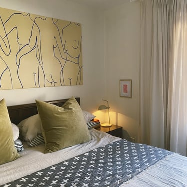 Muted greens like sage and olive bring a peaceful holiday vibe without overwhelming the space. They create a subtly festive look perfect for modern, cozy, English-country, or Japandi-inspired bedroom design.