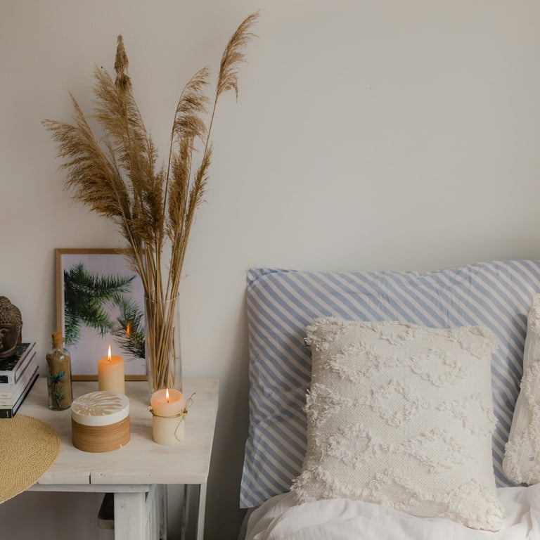 The bedroom surface rule is simple: maximum three intentional objects per surface. Everything else is either stored or removed. The less your eyes have to process when you are lying down, the more easily your mind lets go.
