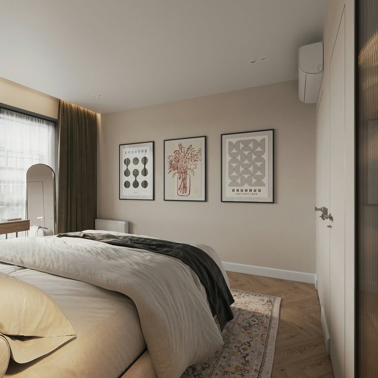 When the surfaces are clear, the bed is the obvious anchor, the light is warm and low, the palette is calm, and soft materials are present, the room starts to do its job without any effort from you. You walk in and your body begins to unwind before you have even made a conscious decision to rest.