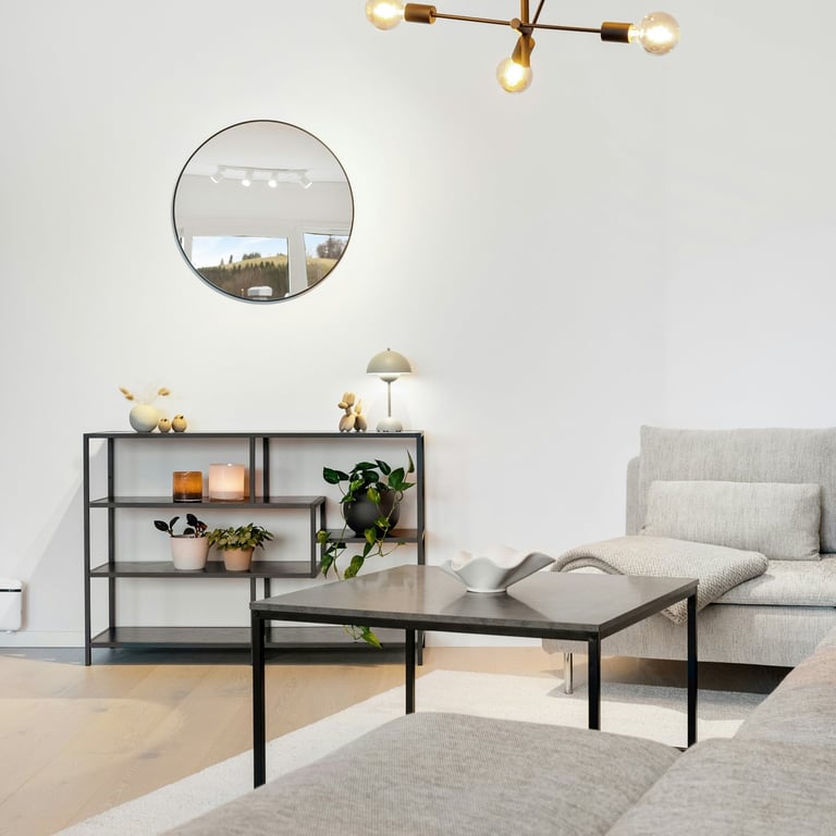 In smaller rooms, the opposite problem can occur. Too little in the room makes it feel sparse rather than minimal. A single sofa in an otherwise empty room doesn't feel cozy. It feels exposed. Adding a rug beneath it, a lamp beside it, and a low side table next to it immediately changes the feeling.