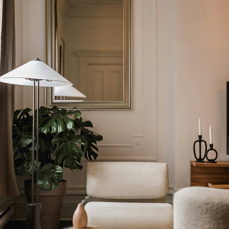 If your room feels too large or too exposed, create a zone rather than trying to fill the whole space. A rug defines the boundary. A lamp marks the edge. A low side table anchors a corner. You're not decorating the room. You're creating a room within the room, sized for a person rather than a space.